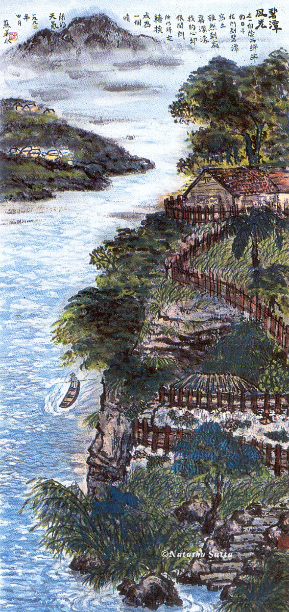 After Wang You-Jun, my landscape teacher was Lo Fang. With her, we investigated different composition possibilities. In Chinese landscape painting the funnest part is always the composition. Unlike western painting, one rarely finds one major focal point. Instead the eye walks leisurely through the landscape, either horizontally or vertically.